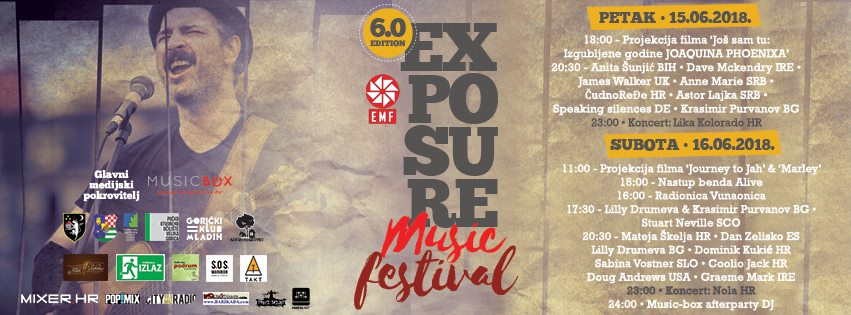 Pred nama je još jedan Exposure music festival, najveći europski open air singer songwriter festival koji se po šesti put održava u Velikoj Gorici. U subotu i nedjelju, 15. i 16.lipnja organizatori su pripremili pregršt događanja; od nastupa kantautora, projekcije filmova, koncerata, radionica i besplatnog kampiranja.